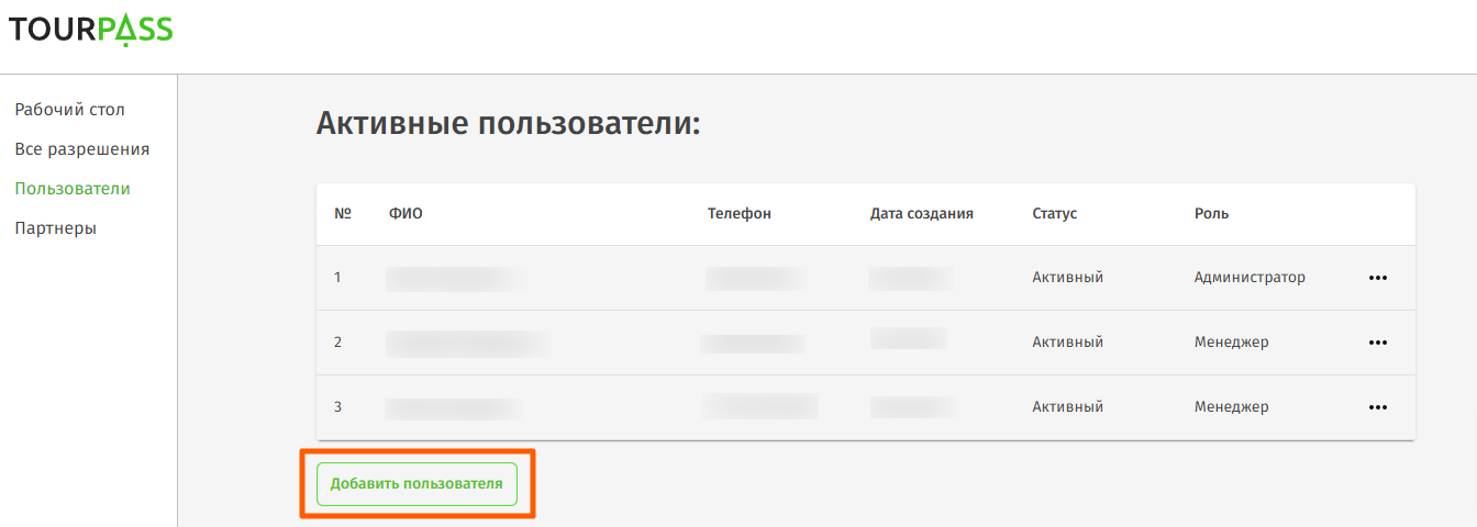 В разделе Пользователи можно создавать менеджеров вашей компании. Каждый пользователь сможет входить в личный кабинет под отдельным логином и паролем. Также в разделе можно управлять доступом пользователей к личному кабинету.