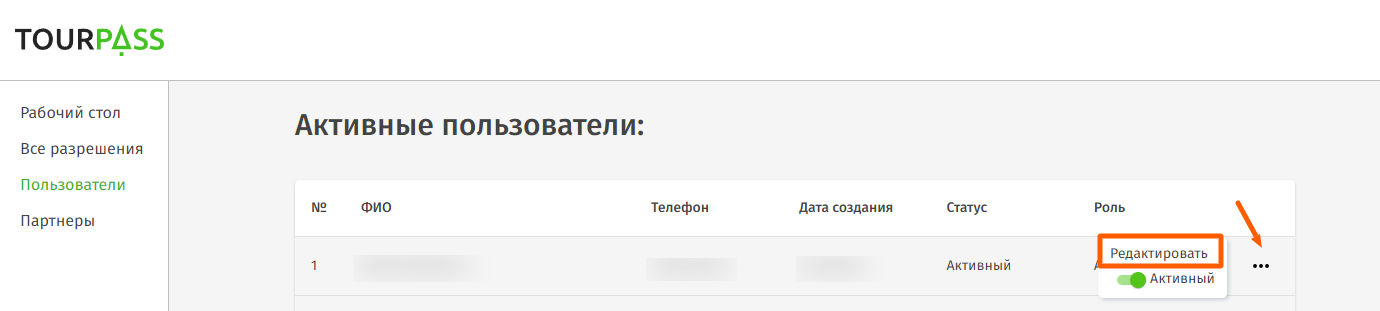 - Чтобы изменить данные пользователя, нажмите Редактировать в меню “…” напротив нужного пользователя.