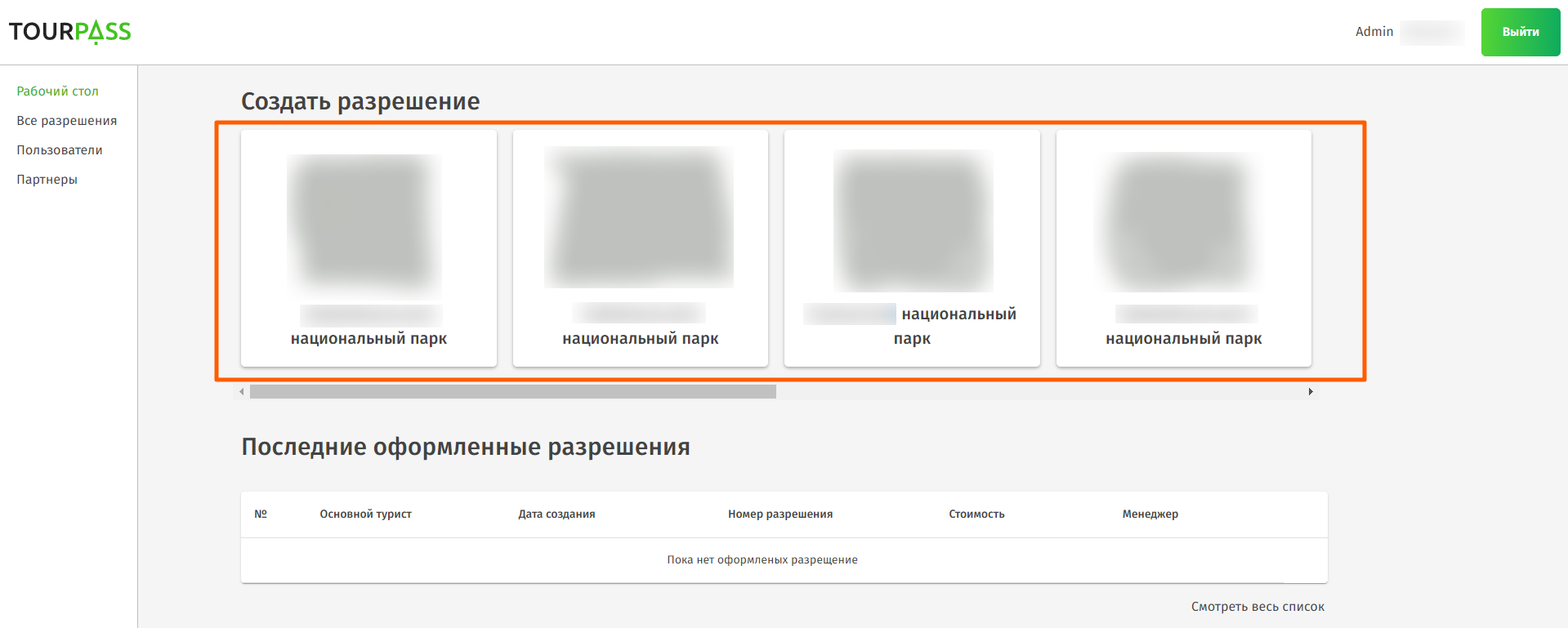 - Войдите в личный кабинет. В разделе Рабочий стол выберите территорию, на посещение которой вы хотите создать разрешение.