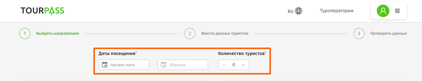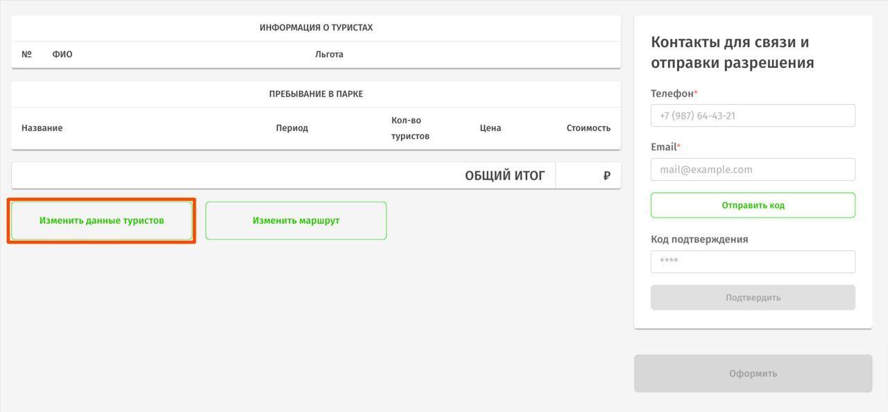 Чтобы вернуться к форме туристов, нажмите кнопку Изменить данные туристов.
