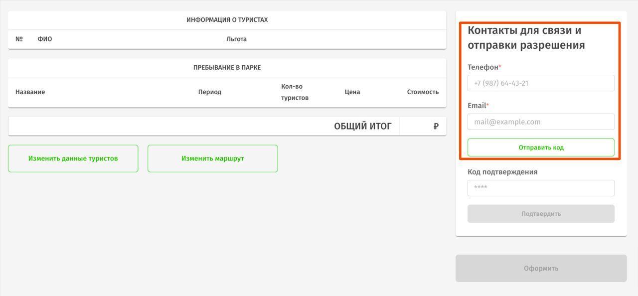 - Укажите контакты главного туриста (телефон и email) для связи с группой и отправки разрешения.