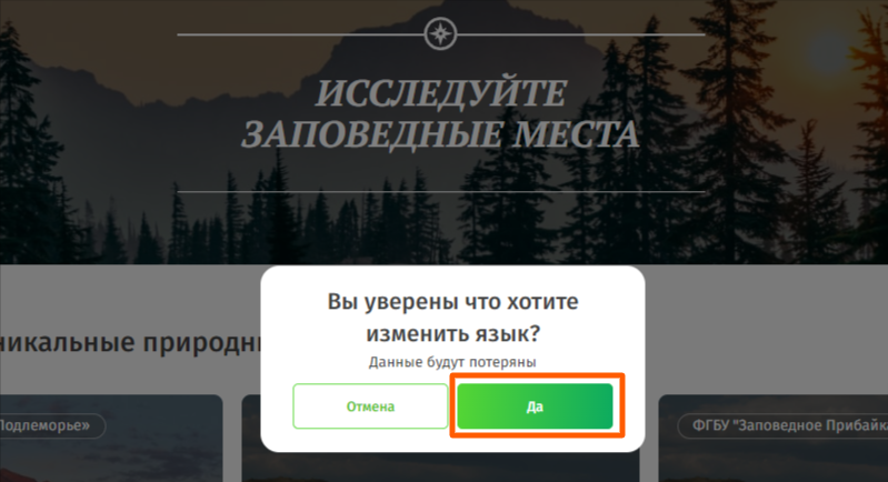 Сменить языкСменить языкПерейдите на главную страницуНажмите на символ RU в правом верхнем углу шапки сайта, чтобы сменить язык сайта,Нажмите на кнопку Да, чтобы подтвердить смену языка