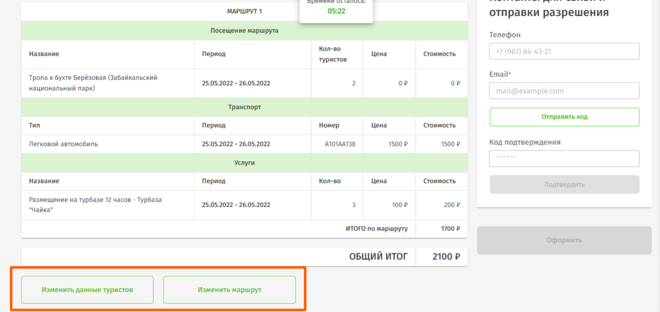- Если необходимо отредактировать информацию о туристах, нажмите кнопку Изменить данные туристов.