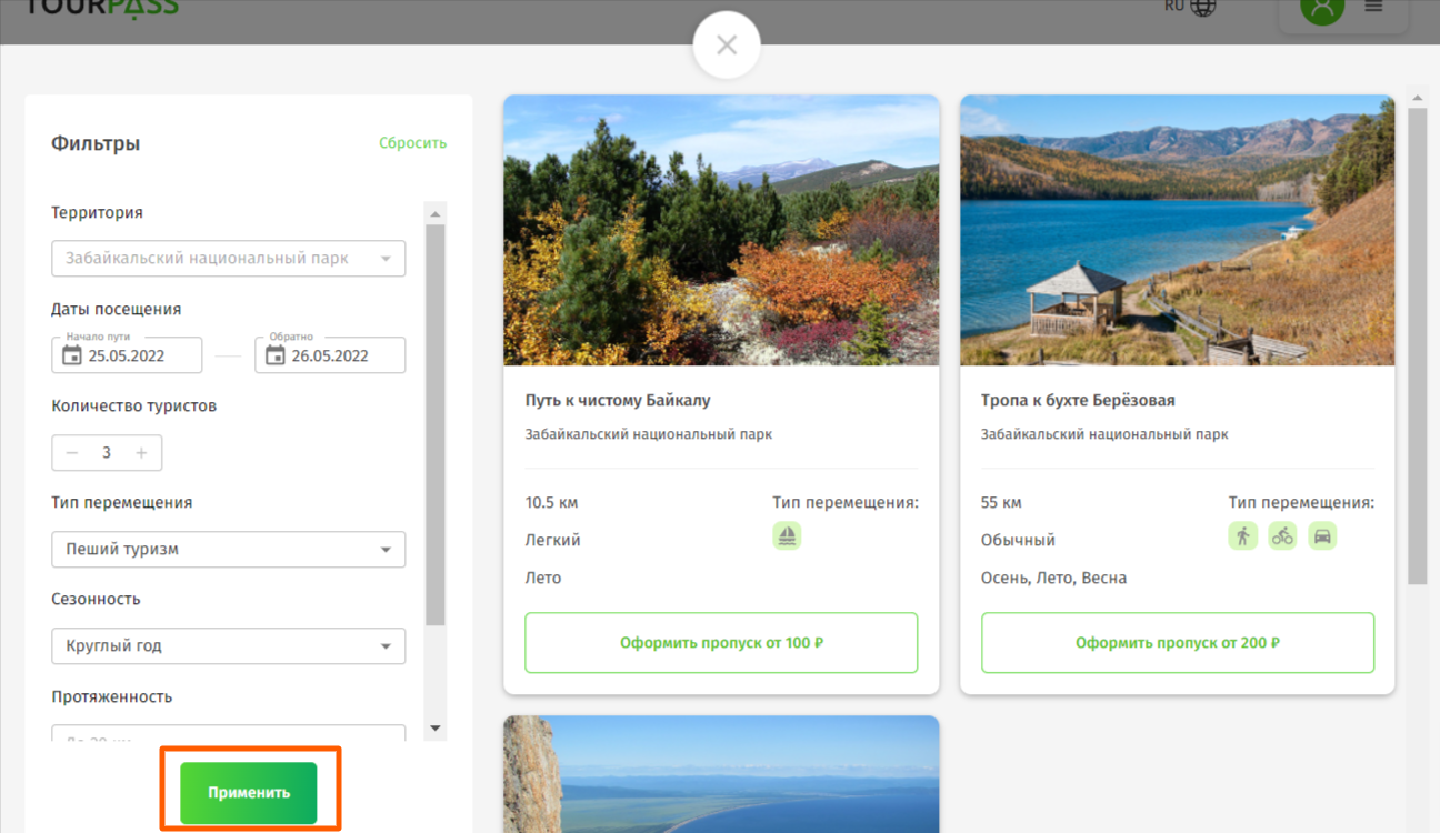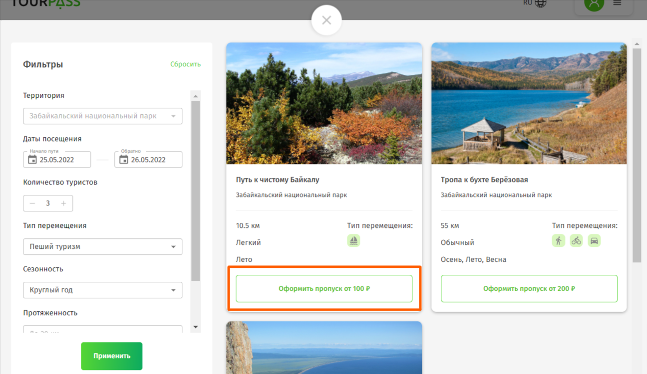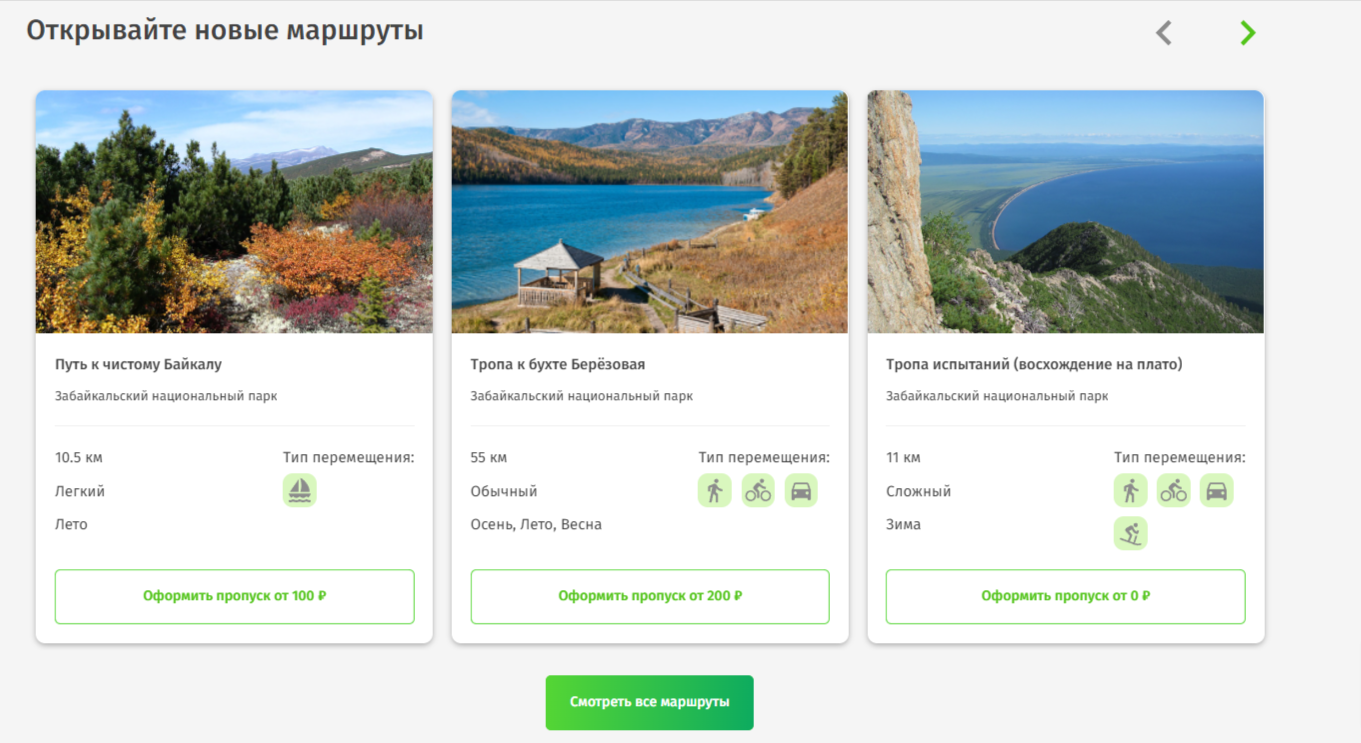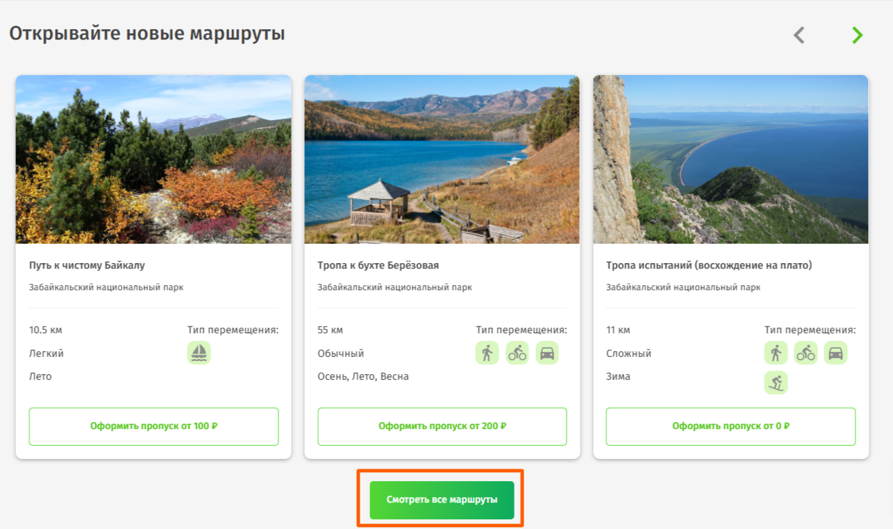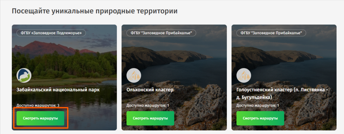 А. Выбрать маршрут конкретного парка / заповедника